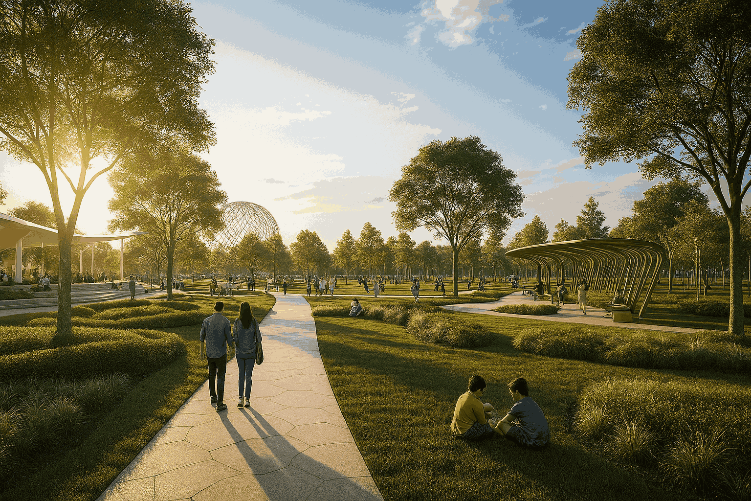 توسعه فضای باز و پارکها یکی از مؤلفههای کلیدی این مأموریت است: در دستور کار این برنامه، «حفظ و توسعه فضاهای باز» و «ایجاد محلههای قابل پیادهروی» دیده شدهاند.
